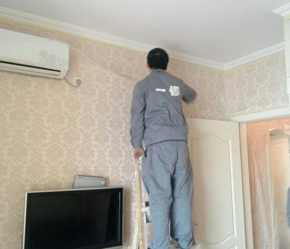 墻紙鋪貼項(xiàng)目內(nèi)容:1.貼墻紙:75平米拼花。2.乳膠漆:20平米。3.修補(bǔ)墻面:局部修補(bǔ)局部刷漆。4.陽臺頂面鏟除新做乳膠漆。5.裝踢腳線,拆踢腳線,掛裝飾品,6.成品保護(hù)。