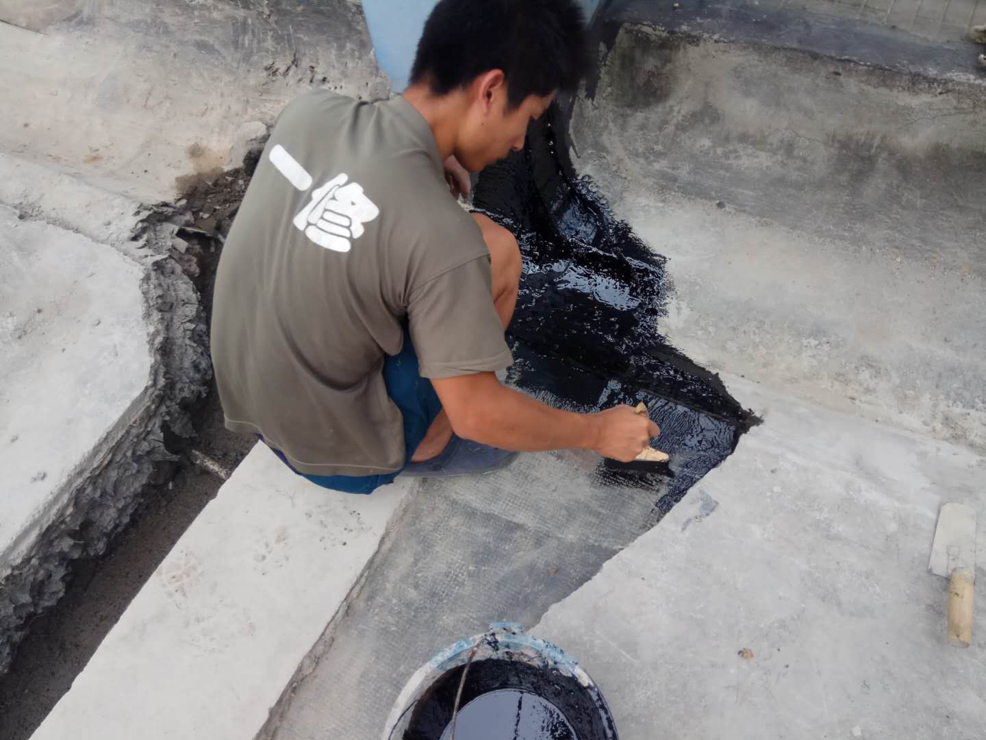 接下來是屋頂防水補漏重要的步驟,涂抹防水涂料。涂抹防水涂料應先涂立面、節(jié)點,后涂平面。涂層應按分條間隔方式或按順序倒退方式涂抹,同時注意女兒墻及管根要著重處理,涂抹完后,涂層上嚴禁上人踩踏走動。